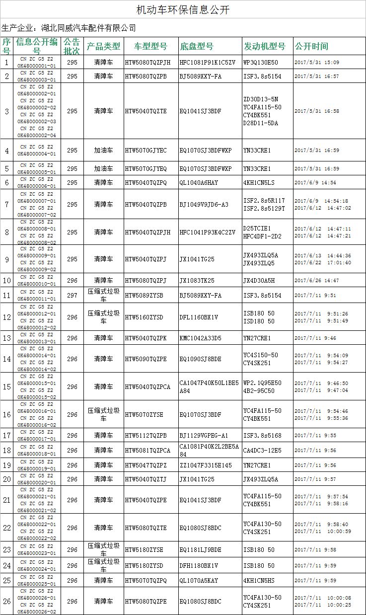 • 湖北同威汽車公司機(jī)動(dòng)車環(huán)保信息公開