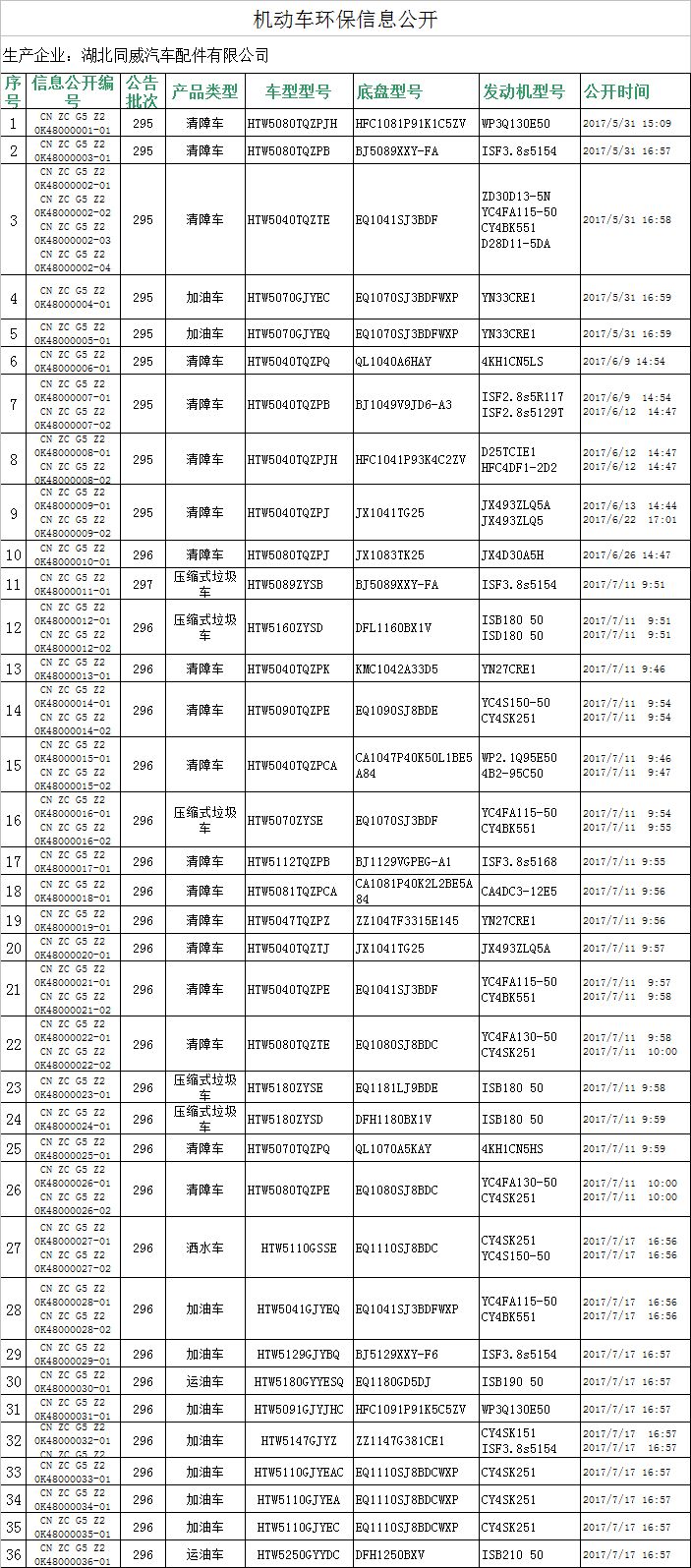 湖北同威汽車機(jī)動(dòng)車環(huán)保公告公示內(nèi)容
